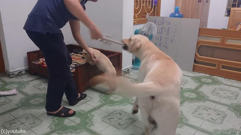 でも飼い主さんのことは好きなので、しっぽを振りつつ道具だけを狙う優しい子なのでした。