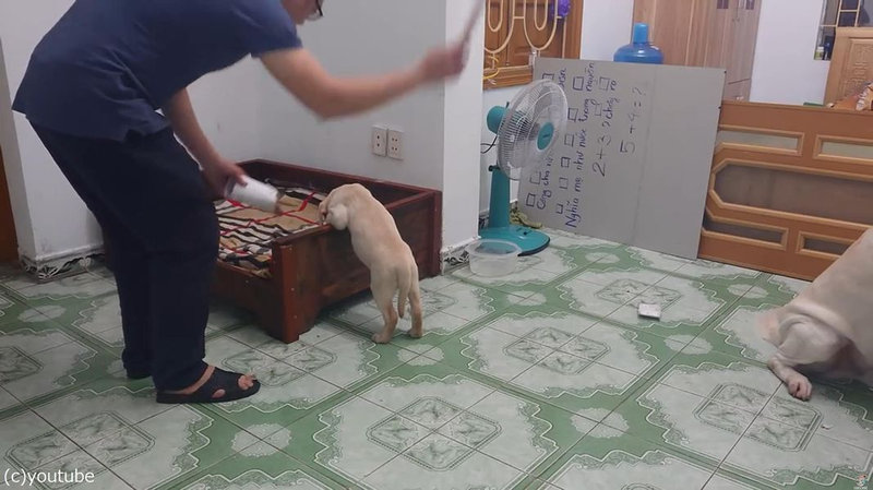 Determined Dog Prevents Man from Punishing Puppy - YouTube