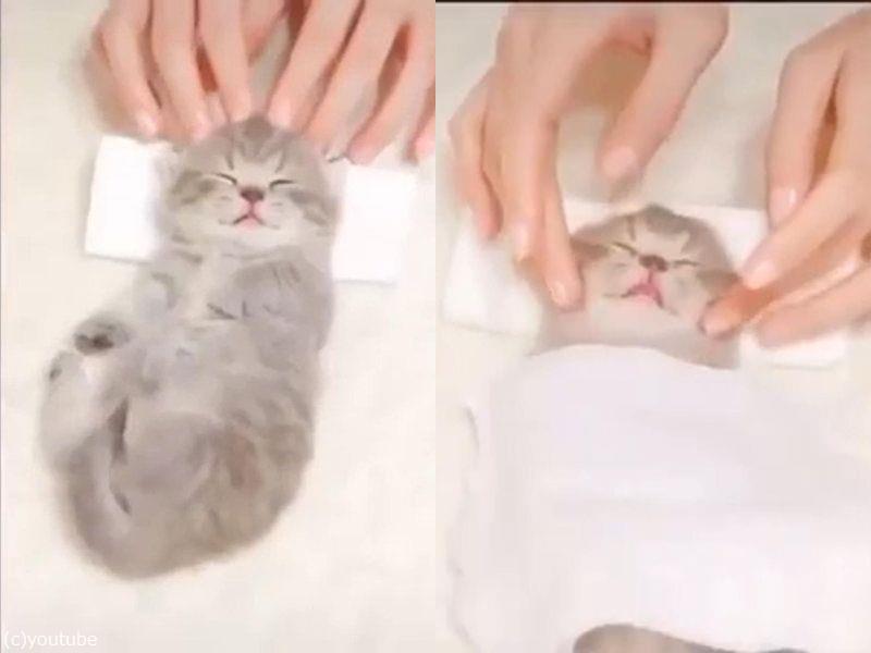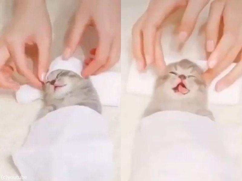 子猫に贅沢なスパを味わってもらったら…幸せそうな表情になった!(動画)