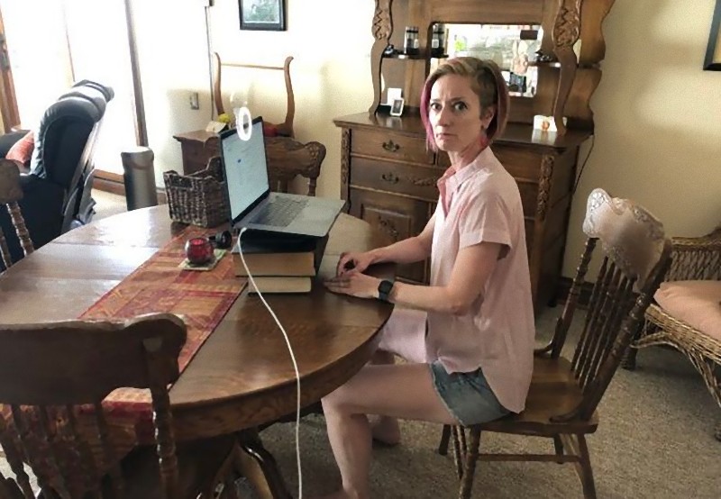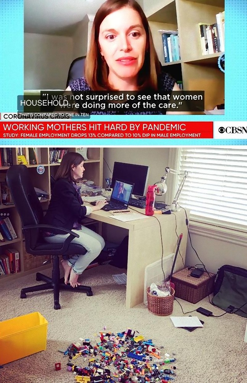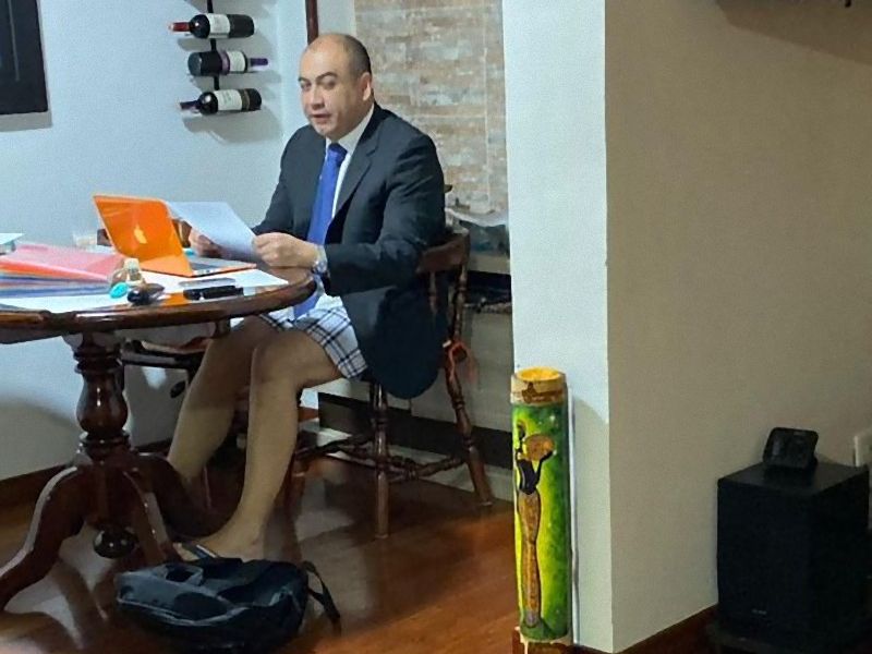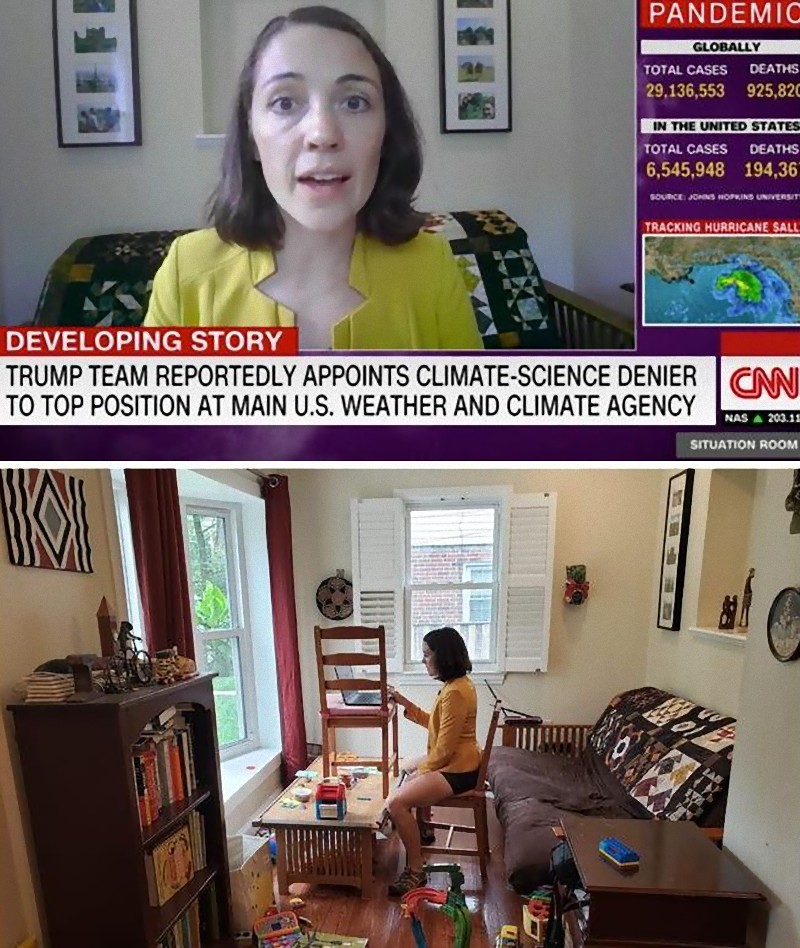 CNNに出演した女性。 映像ではフォーマルに見えますが、イスのテーブルに下はショートパンツ。
