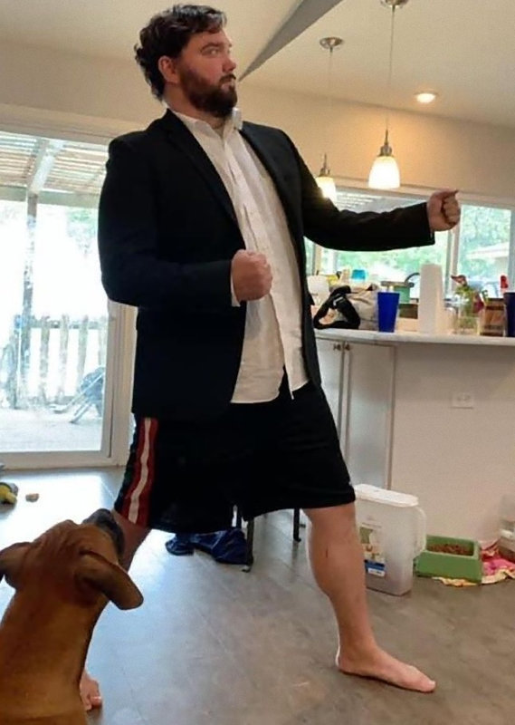 こちらも上半身だけスーツ。