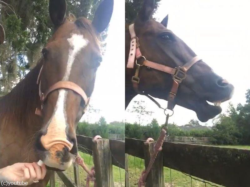 初めて角砂糖を食べた馬「おいしい!」と顔で表現する(動画)