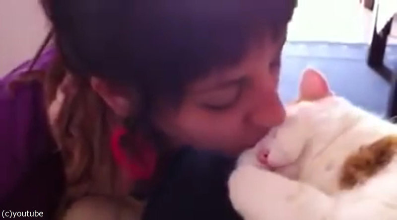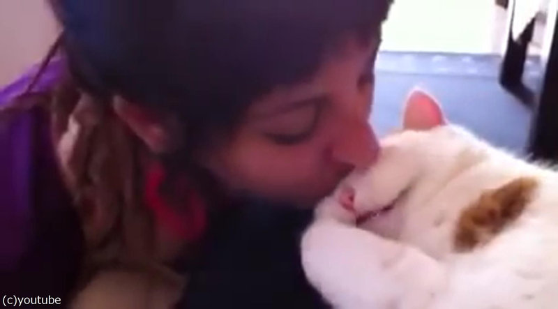 眠った猫に女性がキスすると…「ニャン」と鳴いて応える(動画)