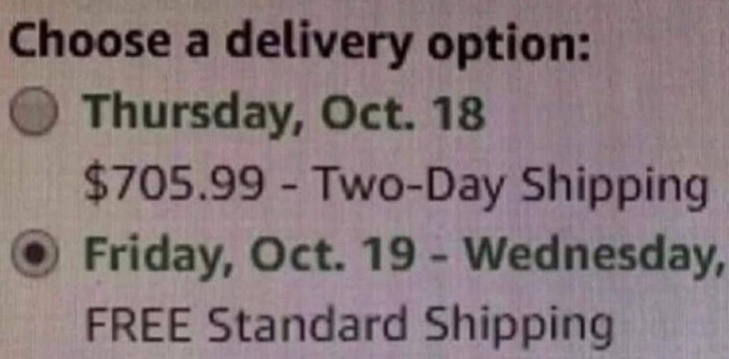特急便にすると配達料が上乗せされるのはよくあることですが、とある人の配達条件が「木曜日にするか金曜日にするか」で激しく差があったそうです。