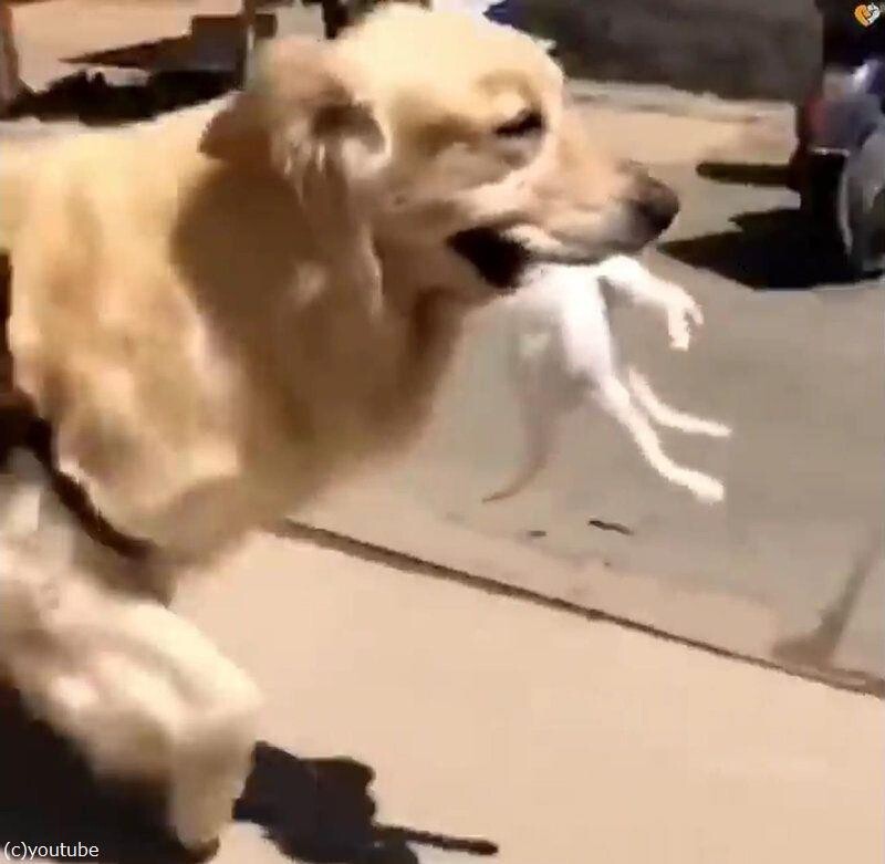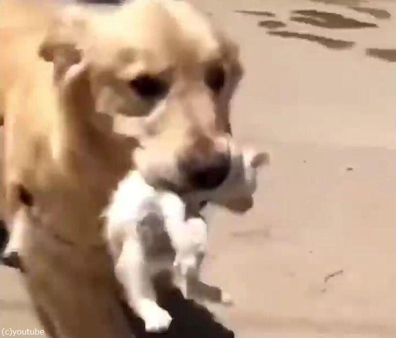 愛犬のゴールデンレトリバーが散歩から戻ってくると、その口には見慣れない赤ちゃん猫の姿が。