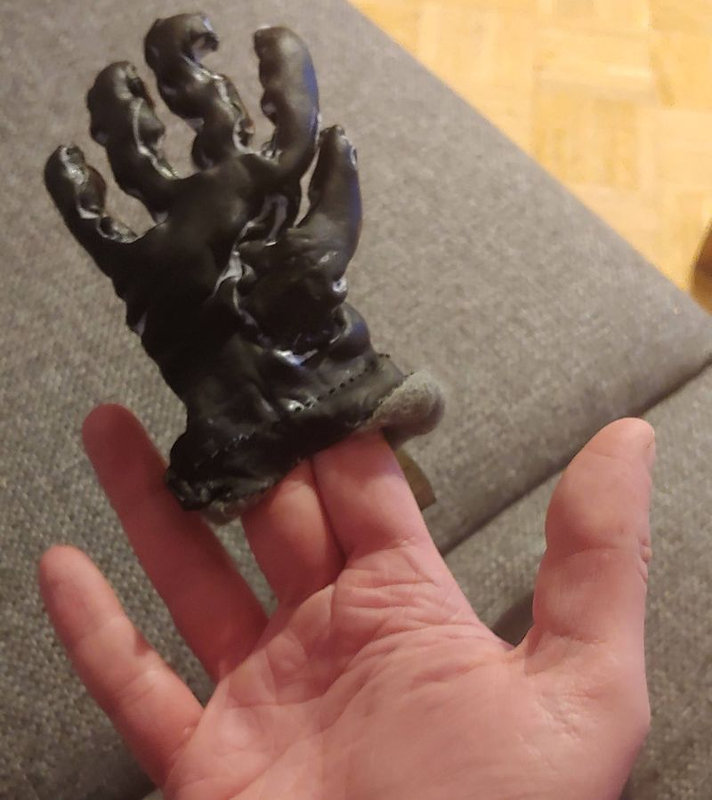 おそらく乾燥もかけてしまったのだと思いますが、持ち主の手と比べてあるので、どれだけ縮んだのか一目瞭然ですね。