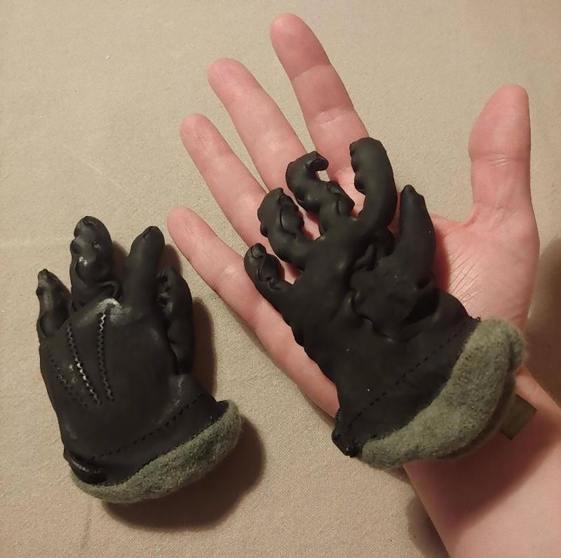 「うっかり革手袋を洗濯機に入れてしまうと…なるほど、こうなるのか」→変わり果てた姿に
