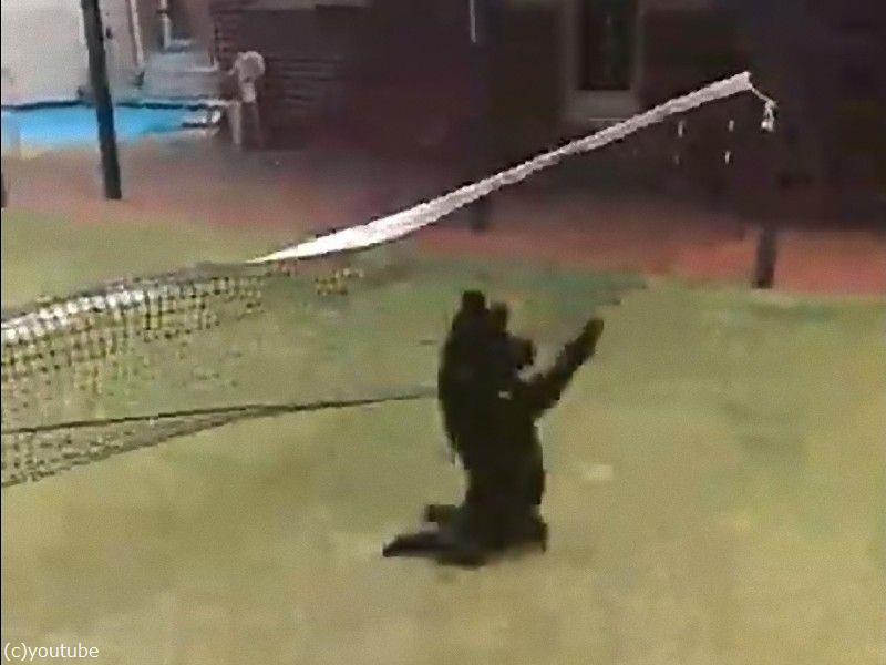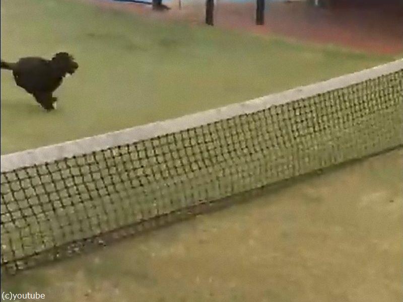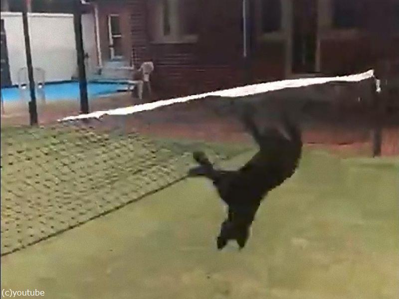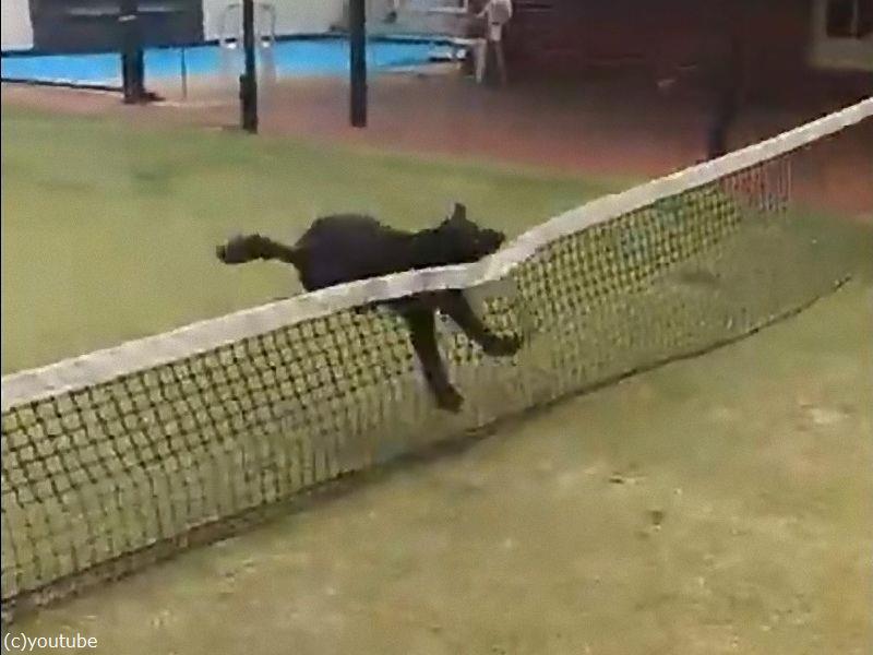 予想もしない宙返りでテニスのネットを飛び越える犬(動画)
