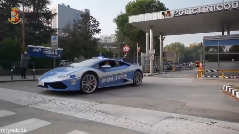 ランボルギーニのパトカーが移植用の臓器を搬送する…500kmを2時間あまりで走破