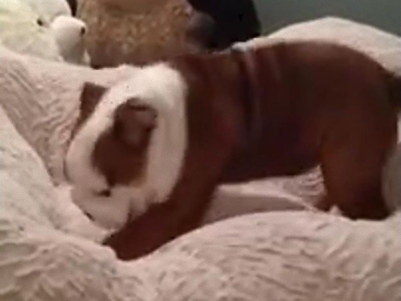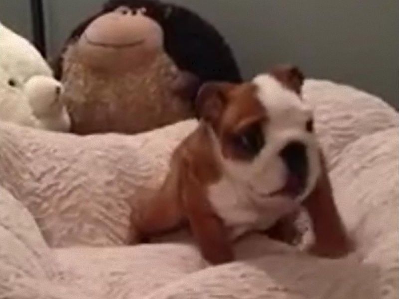 生後4か月の子犬、新しいベッドがお気に入り(動画)