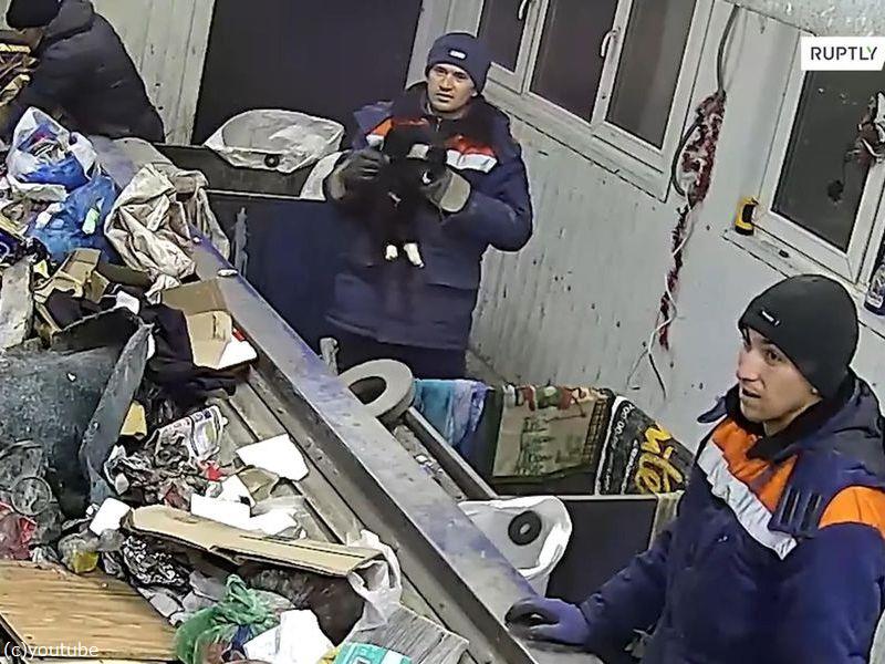 Cat found in a bag on a garbage conveyor belt - YouTube