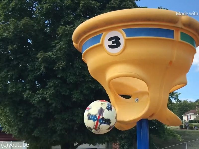 こちらは「ファンネルボール」という、バスケットボールのようにボールを投げる球技のゴール。