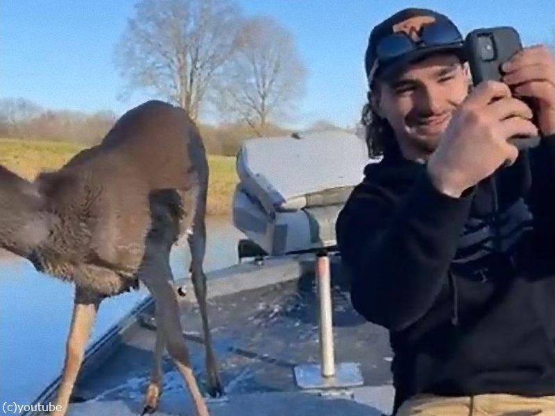 子鹿と仲良くなりたい子猫が…毛づくろいをしてあげる