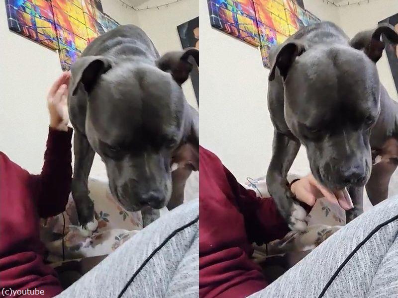 「もっとナデて〜」と強引にお願いする犬(動画)