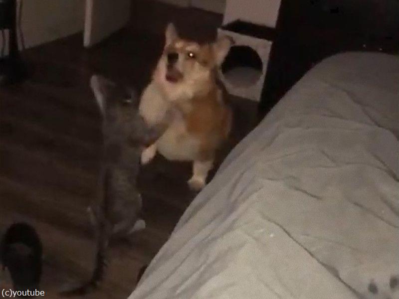 子猫とコーギー犬による…とても平和な戦い(動画)