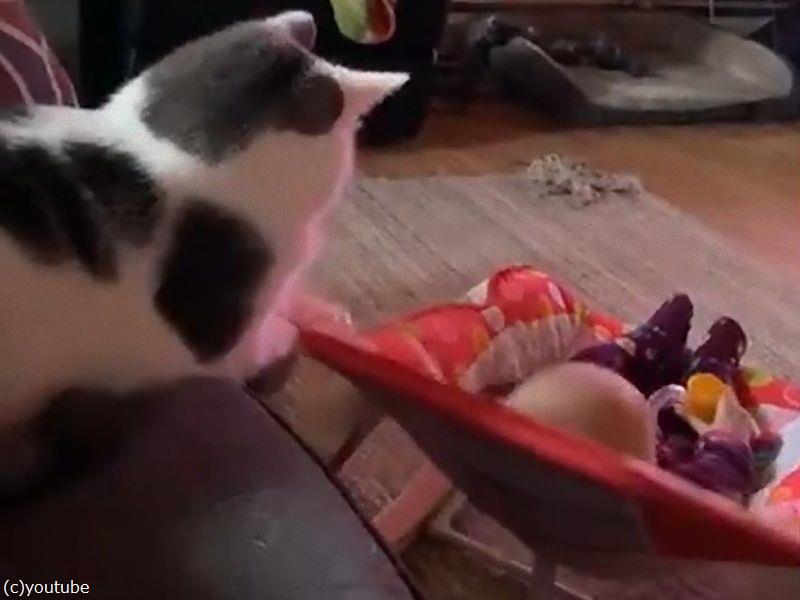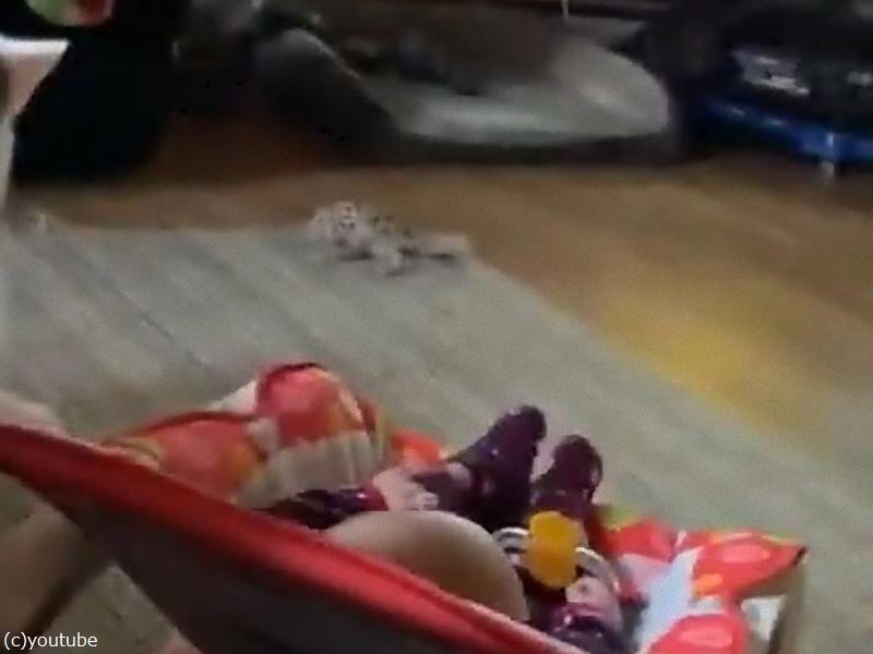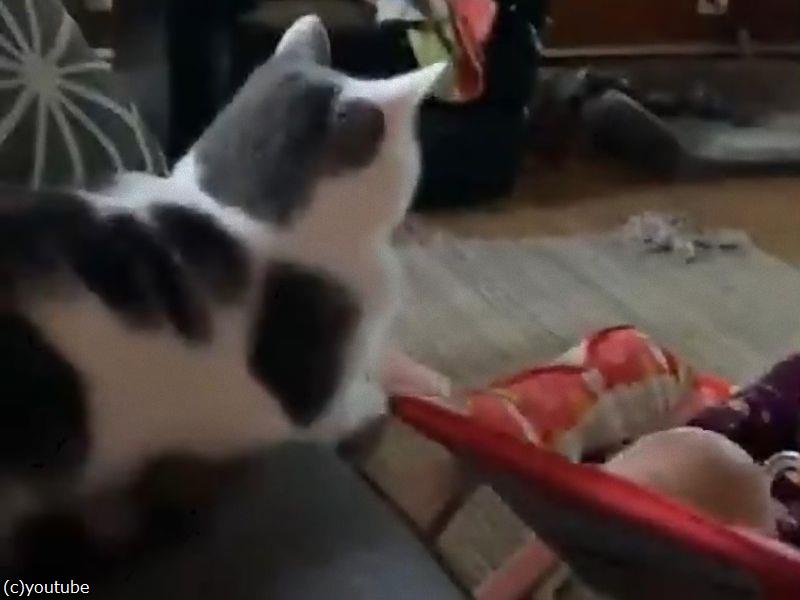 「この生き物は何?」愛犬が初めて飼い主の赤ちゃんを見て…首をかしげる