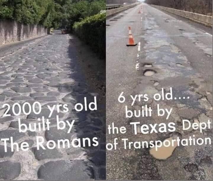 2000年以上前のローマの道と6年前のテキサス州の道路の比較が、海外掲示板で人気を集めていました。