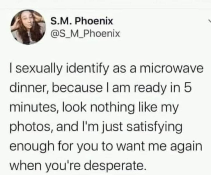 「私の性的なアイデンティティはレンジでチンの夕食ね。