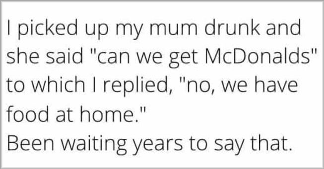 「酔った母親を車で迎えに行った。母親が『マクドナルに寄って』と言ったので、僕はこう返事した。