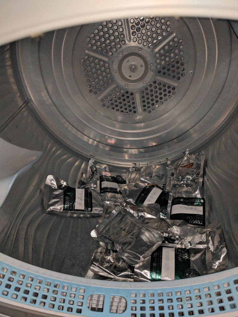 「留守中に猫がキャットフードを盗んでいた…隠し場所は乾燥機」