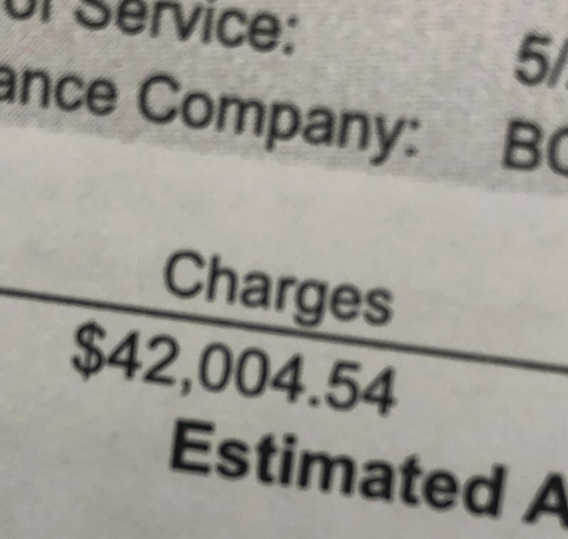 この写真は手術費用だけの請求額で、その20%は払わなくてはいけない。さらに毎週x6か月分の薬も足される。この転倒で今年の所得の4分の1が減る。