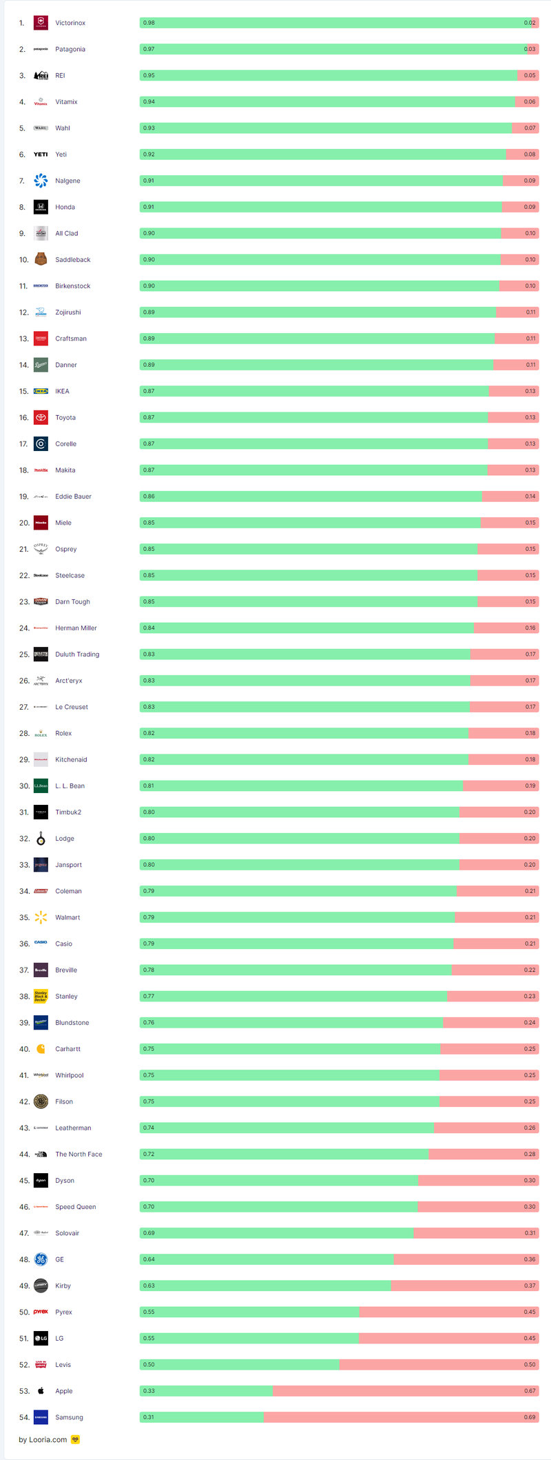 ●自分がランクを見て驚いたのは、ホンダがトヨタより順位が高いこと。Craftsmanが高過ぎること。Appleがあまりに低いこと。