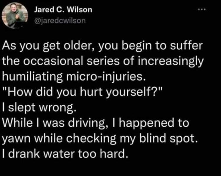 「歳をとるごとに、屈辱的な小さな体の故障に苦しみ始める。
