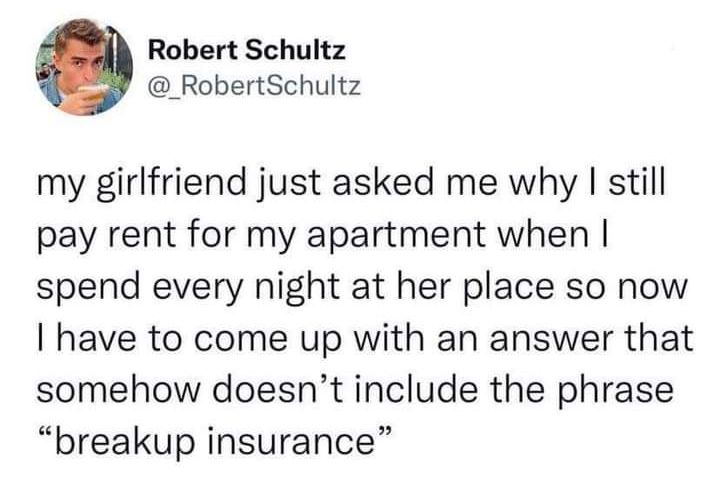「彼女が『なぜ毎晩私の家に泊まっているのに、あなたは自分のアパート家賃を払い続けているの?』と尋ねてきた。
