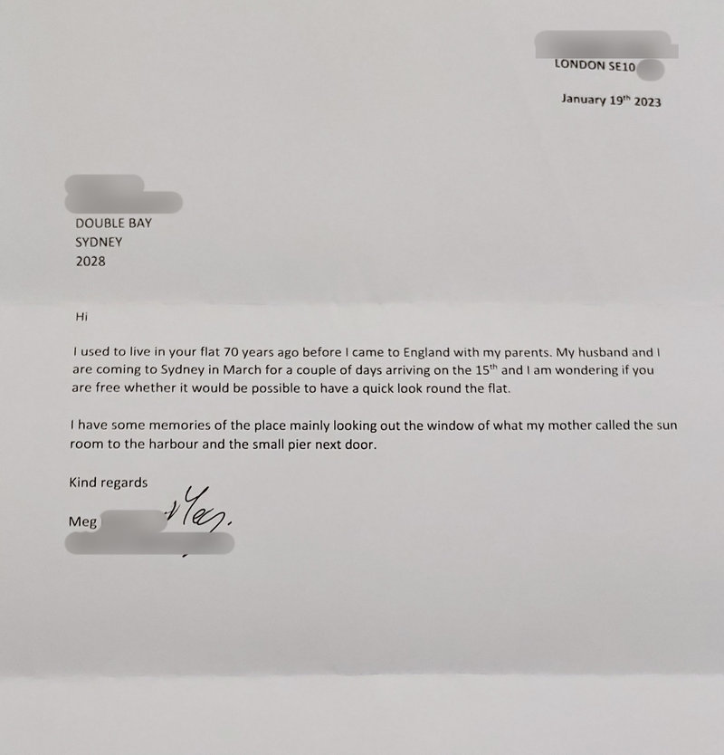 シドニーの住人「知らない女性から手紙が届いた…なんと70年前にこのアパートに住んでいたと言う」