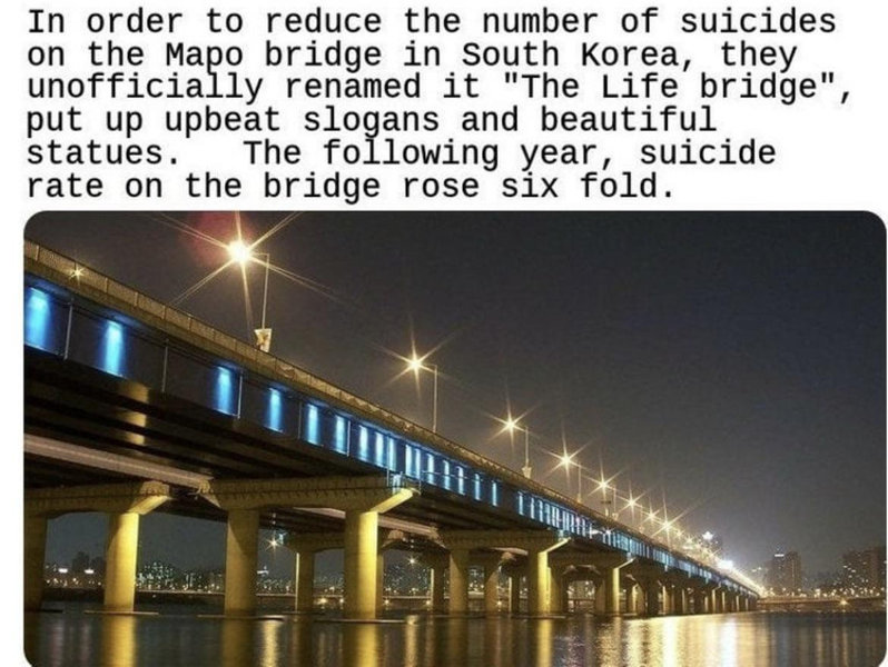 「韓国の橋で自殺防止のスローガンを掲げたら6倍増の皮肉」海外の反応