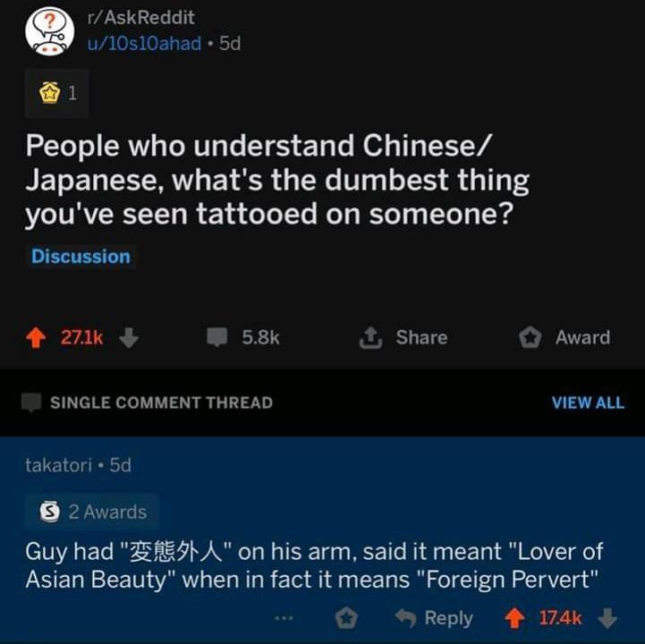 欧米人「中国語や日本語を理解できる人に質問、今までに見た最低なタトゥーは何?」回答いろいろ