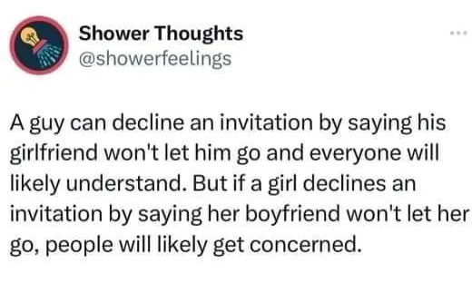 しかし女性が誘いを断る場合、彼氏が許してくれないと言えば、人々は心配する傾向がある」