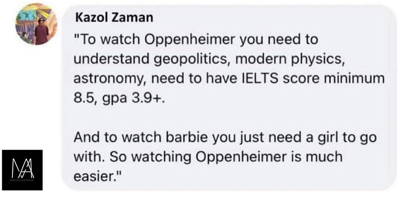 「まず『オッペンハイマー』を見るには、地政学、現代物理学、天文学を理解し、IELTSスコア8.5以上、GPA3.9以上の知識が必要だ。