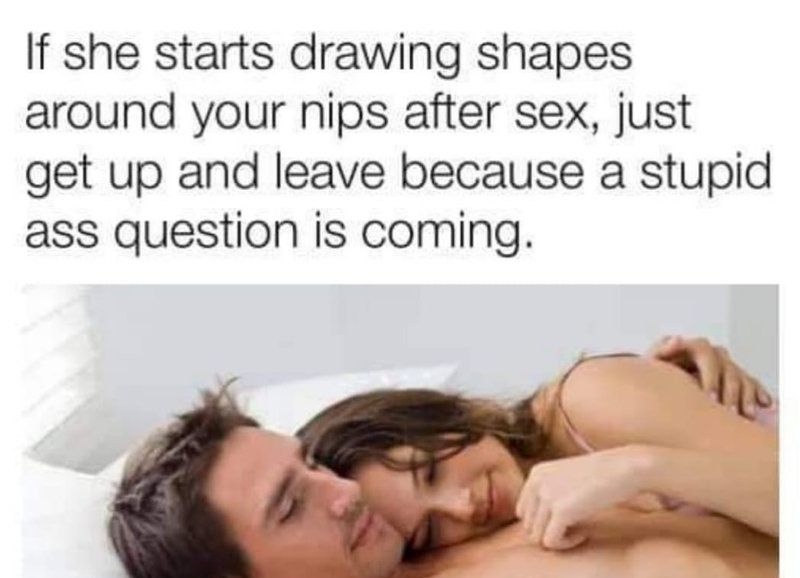 「女性と関係を持ったあと、彼女があなたの胸を指で円を描き始めたら、さっさと立ち上がって去るといい。なぜなら、そのあとにバカな質問が来るだろうから」