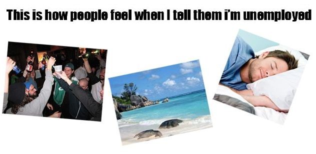 特に仕事が忙しいときだと、失業中というのは長い休暇のようにも思われ、夜はバーで遊んでいるとか、のんびりビーチへ旅行とか、朝はいつまでも寝ていられるとか勘違いされて、うらやましがられてしまうのではないでしょうか。