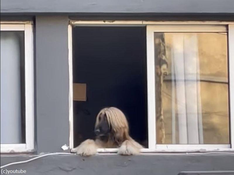 貴公子のような犬が2階の窓から街を見守っていた(動画)