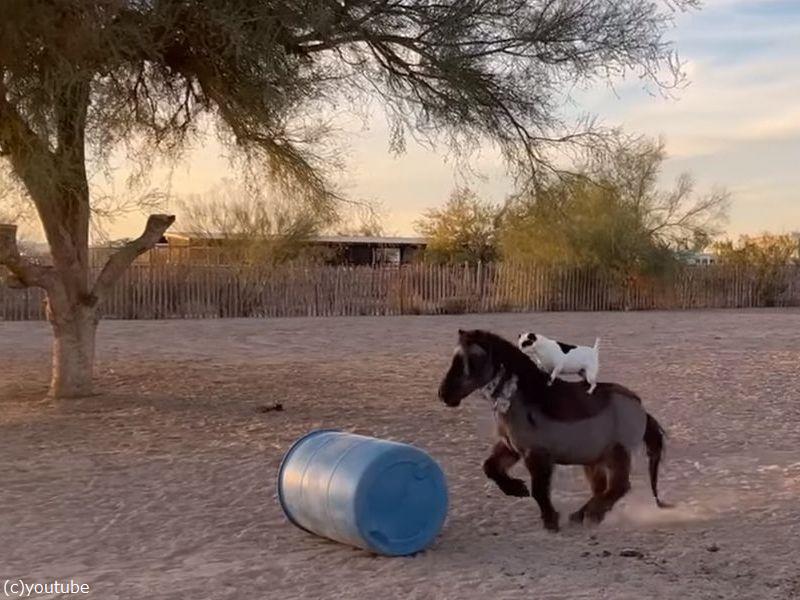 馬に騎乗した犬が…見事に障害物を飛越する(動画)