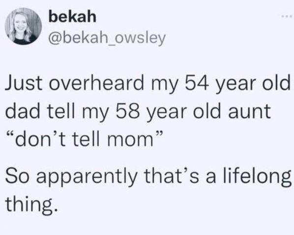 「ちょうど54歳の父親が58歳の伯母に『母さんには言うなよ』と言っているのを聞いた。どうやらそのやりとりって一生ものだったんだね」
