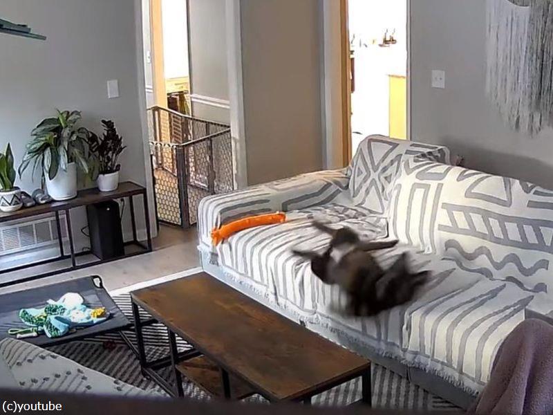 猫がソファの隣に座ってきて…犬のテンションが抑えられない(動画)