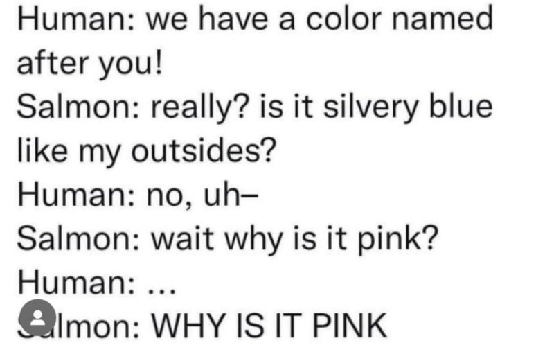 サーモンピンク色は素敵な色だとは思いますが、サーモンがそんな色だと言われるのは、つまり……。