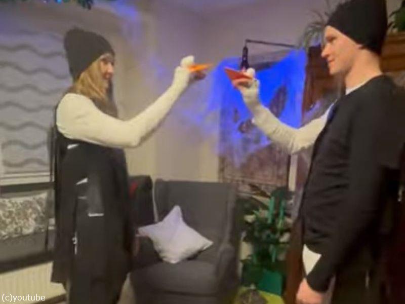 一瞬にしてダチョウに変身するコスプレを作った男女(動画)