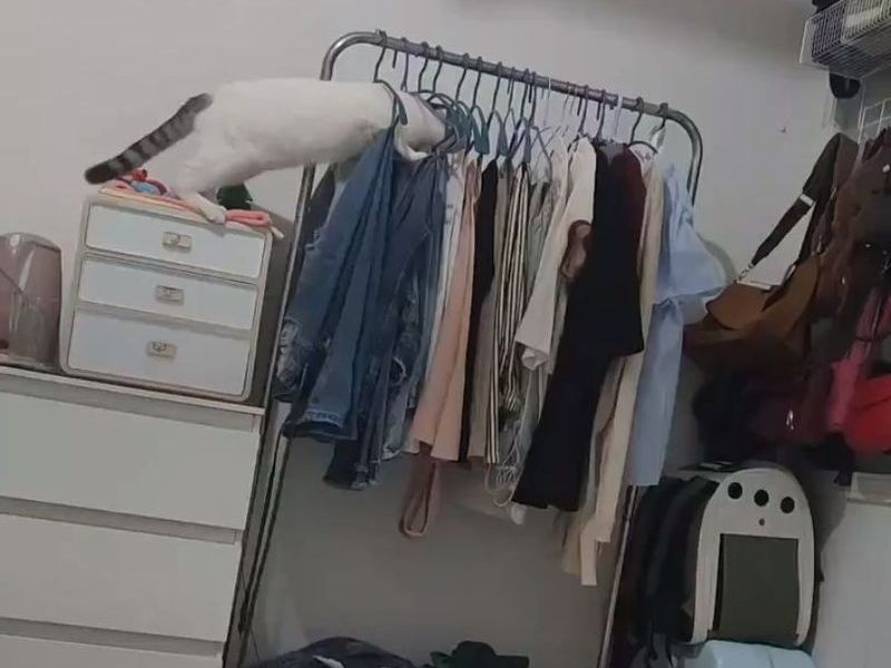 猫が「ハンガーラック・チャレンジ」すき間を通り抜けた結果は…