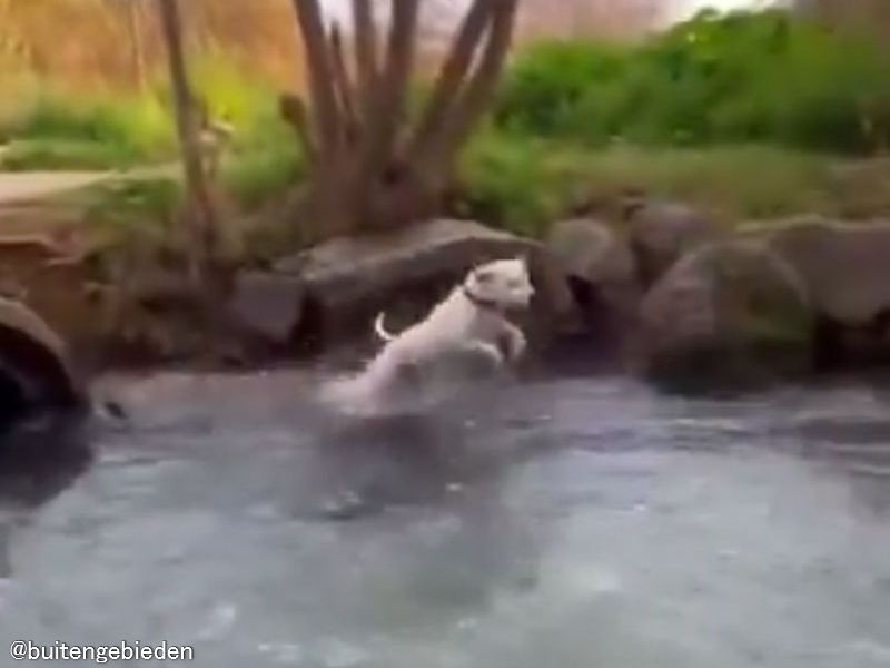 独り遊びが得意な犬…川がアトラクションに変身