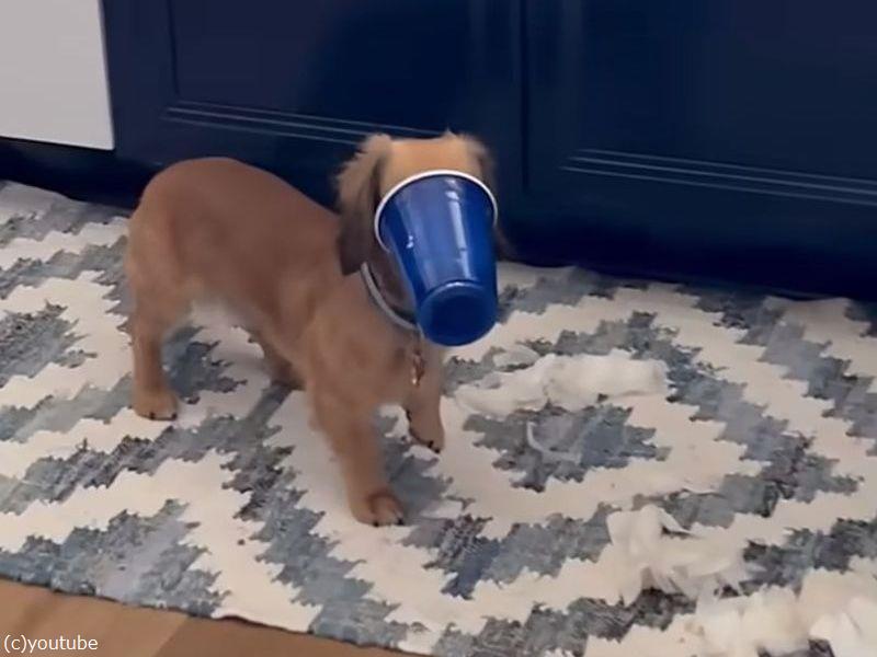 自宅のゴミを掘り返していた愛犬が…叱られて動きが止まる(動画)