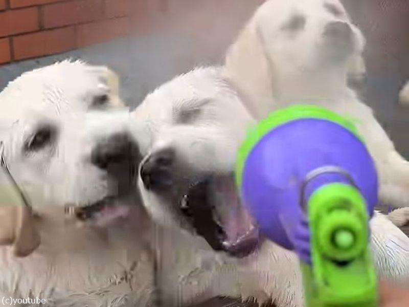 水遊びが好きなラブラドールの子犬たちが…ホースの水を噴射されて大興奮(動画)