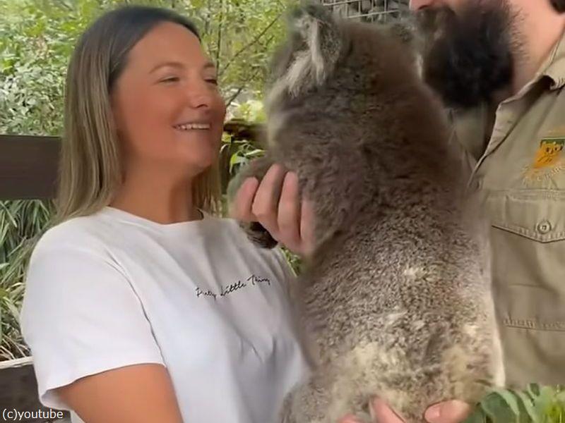 コアラを抱っこするのが夢だった女性…初めての体験にこの笑顔(動画)