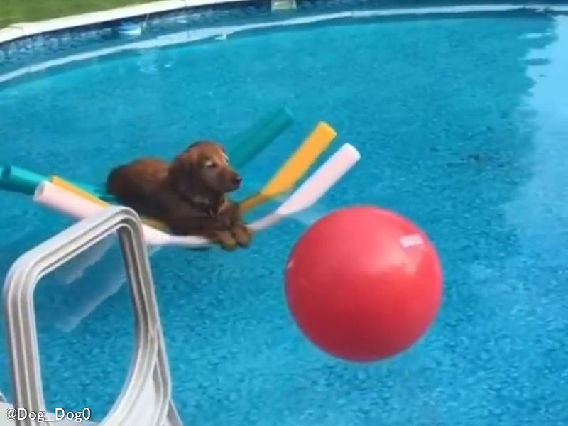 優雅な過ごし方が何たるかを心得ている犬…プールでぷかぷか