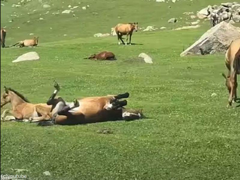 「山岳地帯に信じられない姿勢で寝ている馬がいた…」(動画)