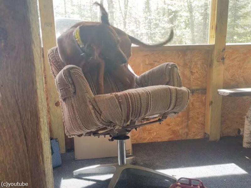 イスが壊れてグラグラ…犬が落っこちそうになりながらも座ろうとする(動画)