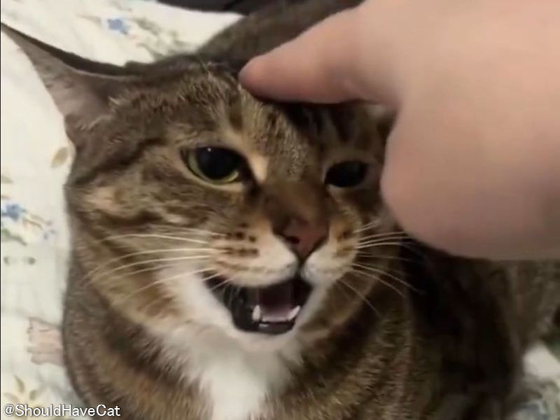 おでこをタッチするたびに猫が「にゃ〜ん」と鳴く